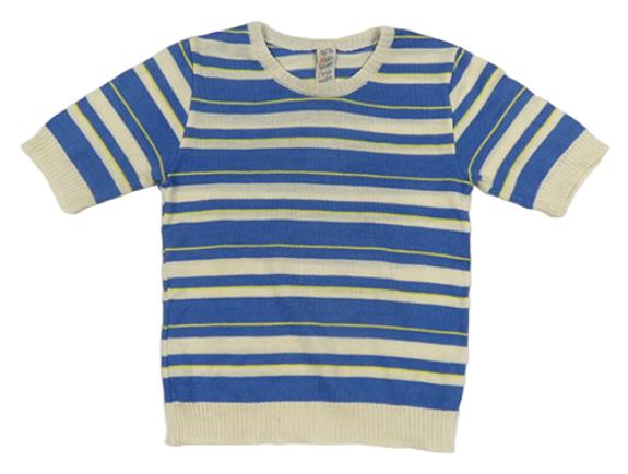 Světlebéžovo-modro-limetkové pruhované pletené tričko