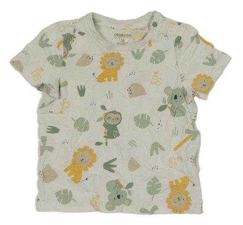 Biele tričko so zvieratkami a listami a palmami ORCHESTRA