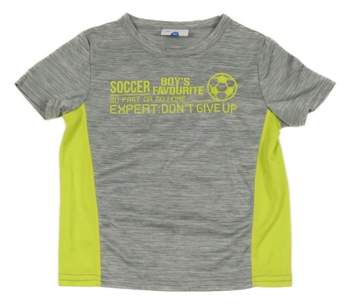 Sivo-limetkové melírované športové tričko s nápismi a loptou Topolino