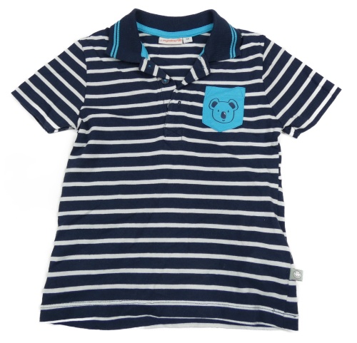 Tmavomodro-biele pruhované polo tričko s vreckom a medvedíkom Liegelind