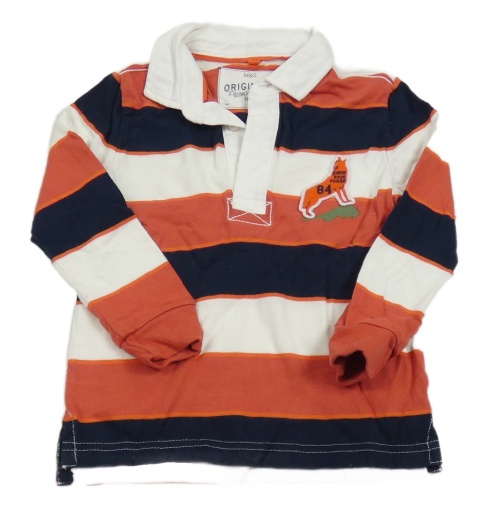 Bielo-červeno-tmavomodré pruhované polo tričko s vlkem M&S