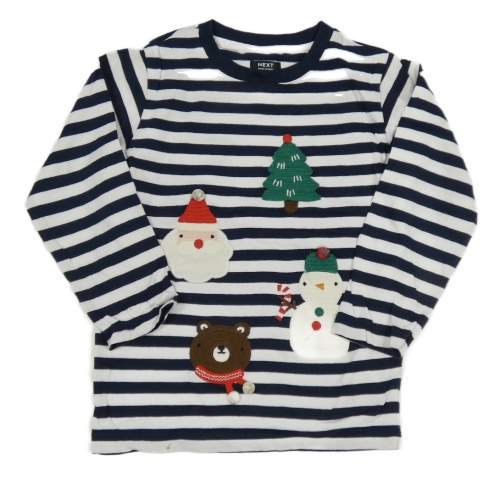 Tmavomodro-biele pruhované tričko s vánočními obrázky Next