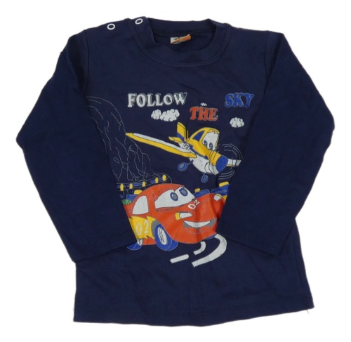 Tmavomodré tričko s lietadlom a autom