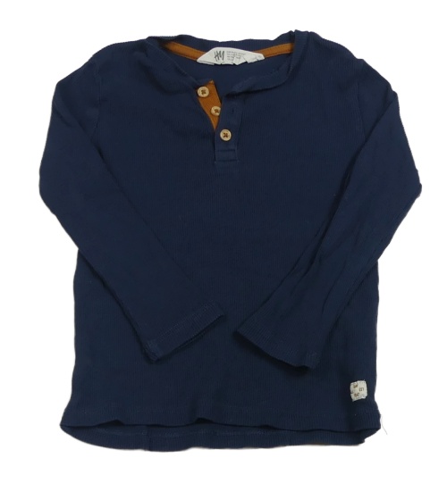 Tmavomodré rebrované tričko s gombíkmi H&M