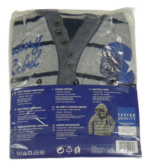 Nové - Sivo-tmavomodrá pruhovaná mikina s nápisom a helmou a kapucňou