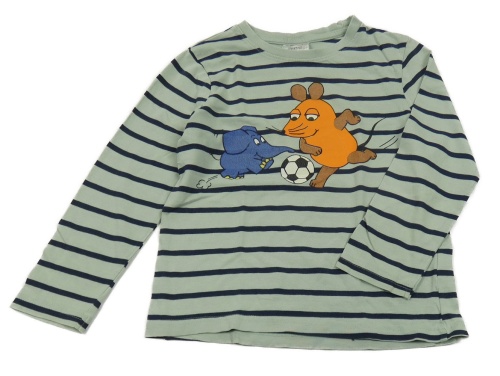 Světlekhaki-tmavomodré pruhované tričko s myší a slonom