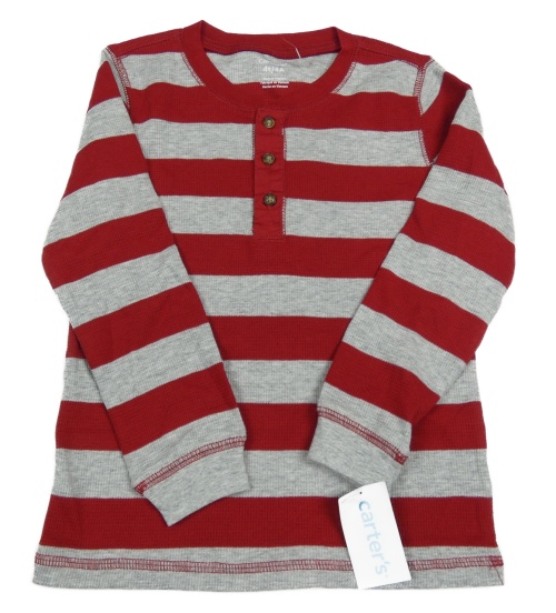 Nové - Červeno-sivé pruhované rebrované tričko s gombíkmi Carter's