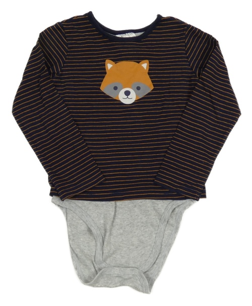 Tmavomodro-hnedé pruhované tričko s mývalem a všitým body Impidimpi