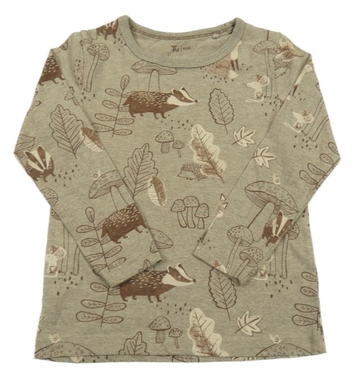 Hnedé melírované tričko so zvířaty a listami Tu