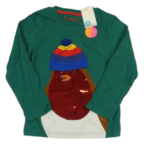 Nové - Zelené tričko s ptáčkem z překlápěcích flitrů Mini Boden