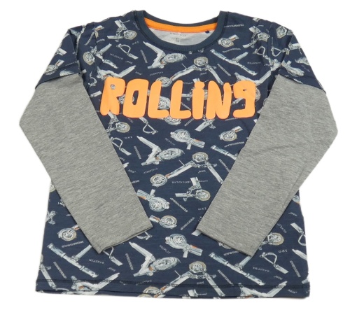 Tmavomodro-sivé tričko s koloběžkami a nápisom Name it
