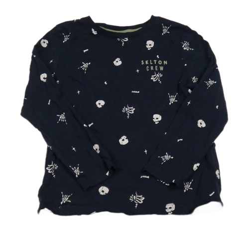 Tmavomodré tričko s lebkami a nápisom Kiabi