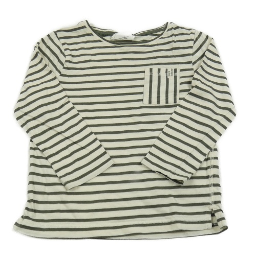 Smetanovo-zelené pruhované tričko s vreckom Topolino