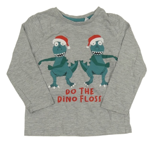 Sivé melírované tričko s dinosaurami s vánočním motívom C&A