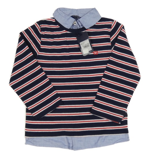 Nové - Tmavomodro-bielo-červené pruhované rebrované tričko s košilí Maine