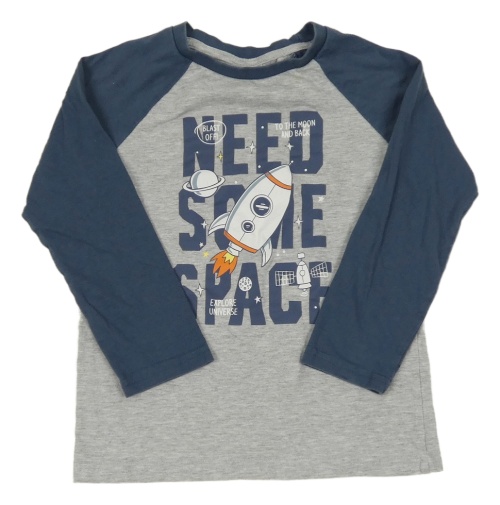 Sivo-tmavomodré melírované tričko s raketou a nápismi