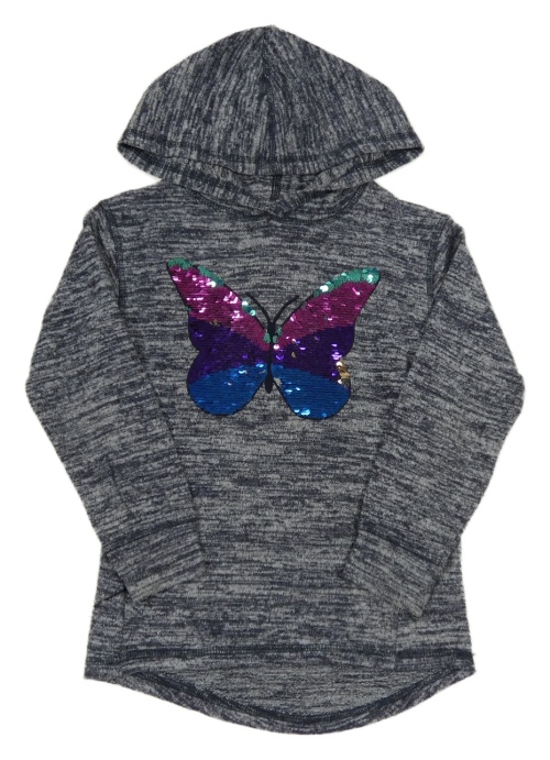 Tmavomodro-sivé melírované úpletové tričko s překlápěcími flitre a kapucňou Bluezoo