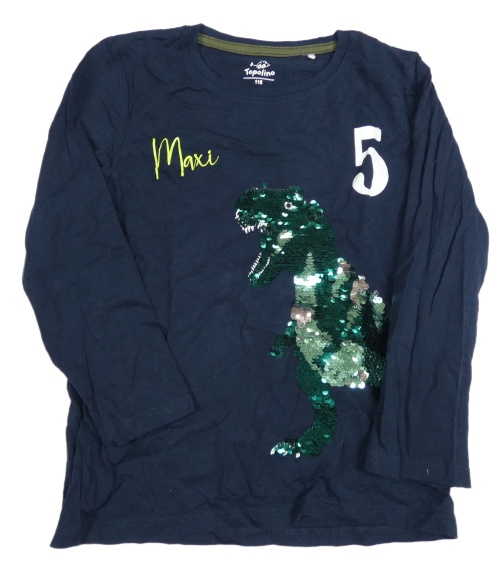 Tmavomodré tričko s dinosaurem z překlápěcích flitrů Topolino