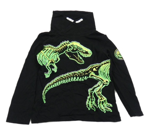 Čierne tričko s kostrou dinosaura a komínovým golierom dopodopo