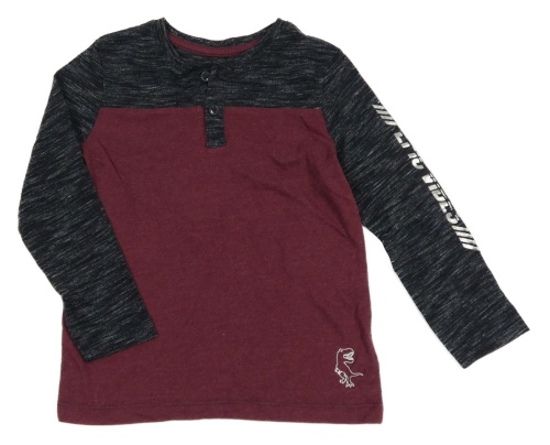 Vínovo-sivé tričko s nápisom a dinosaurom C&A
