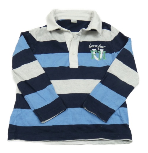 Tmavomodro-modro-biele pruhované polo tričko s nápisom Tu