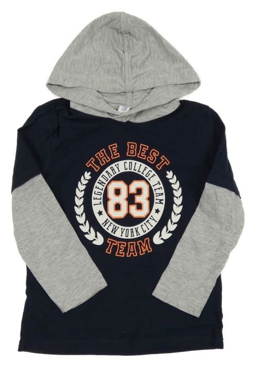 Tmavomodro-sivé tričko s číslom a nápismi a kapucňou Topolino