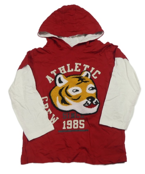 Červeno-biele melírované tričko s tigrom a kapucňou Kiki&Koko