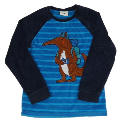 Modro-tmavomodré zamatové tričko s prúžkami a obrázkom C&A