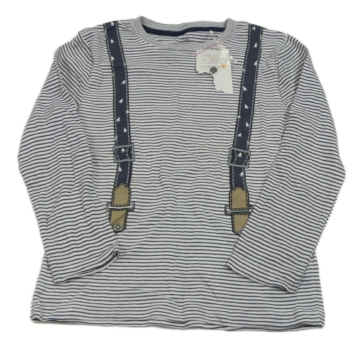 Nové - Bielo-tmavomodré pruhované tričko s trakami Topolino