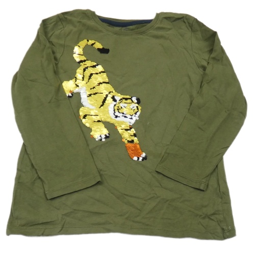 Khaki tričko s tygrem z překlápěcích flitrů Topolino