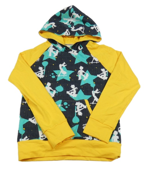 Tmavomodro-žlté tričko s hvězdami, panáčky a kapucňou