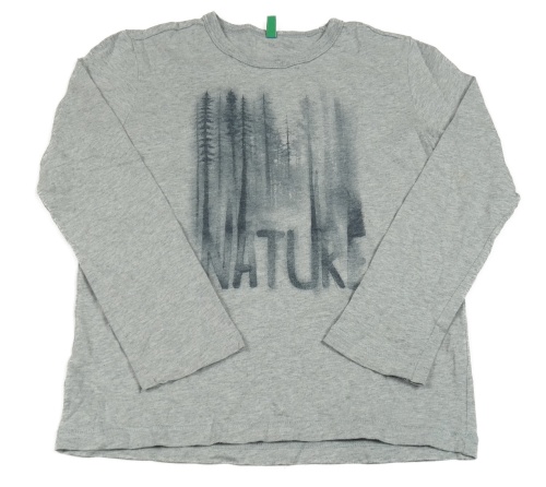 Sivé melírované tričko s lesem a nápisom Benetton