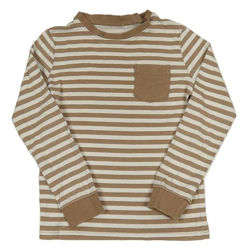 Hnedo-biele pruhované tričko s vreckom