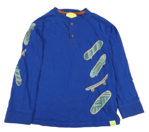 Modré tričko so skateboardmi a gombíkmi White Stuff
