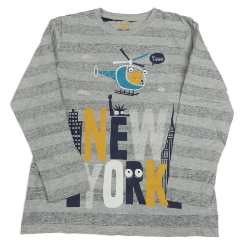 Sivé pruhované tričko s vrtuľníkom a nápisom