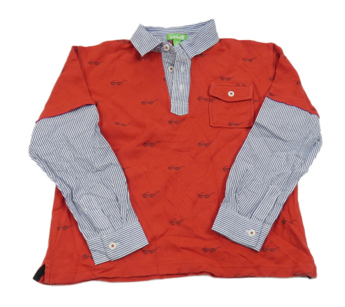 Červené tričko s okuliarmi a vreckom a všitou modro/bílou košilí bossini