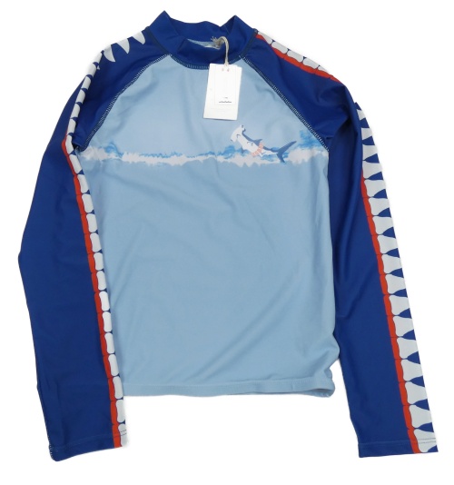Nové - modro-tmavomodré UV tričko so žralokom Fat Face