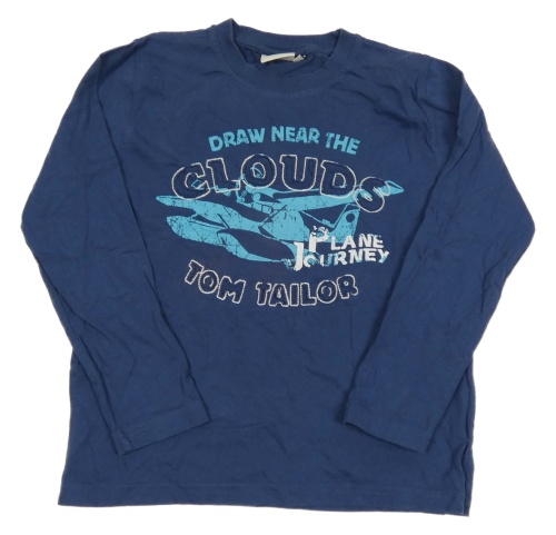 Tmavomodré tričko s nápismi a lietadlom Tom Tailor