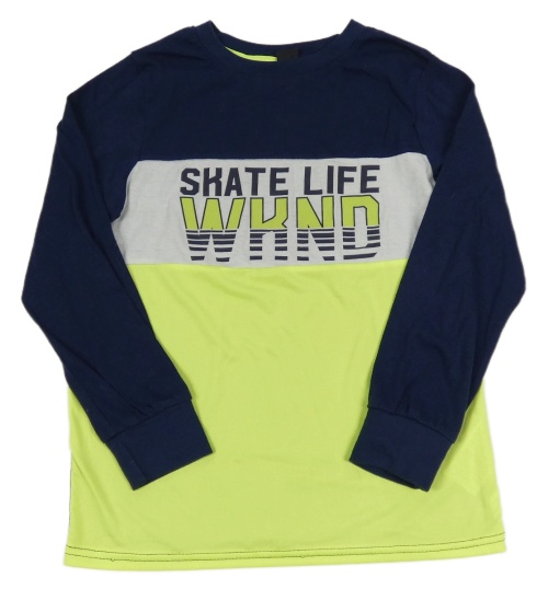 Tmavomodro-neónově zeleno-biele tričko s nápisom Y.F.K.
