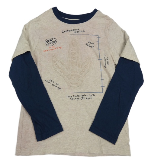 Béžovo-tmavomodré tričko s 3D stopou dinosaura