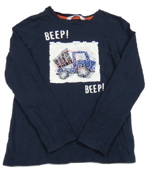 Tmavomodré tričko s překlápěcími flitre s nákladním autom a nápismi H&M