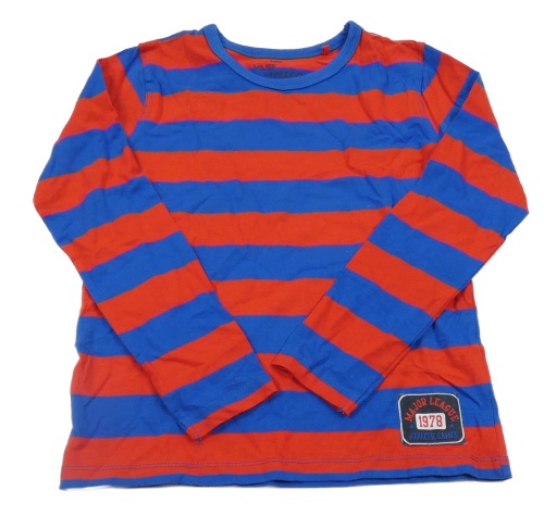 Cobaltovoě modro-červené pruhované tričko s nášivkou