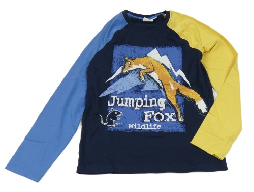 Tmavomodro-modro-žlté tričko s líškou Kids