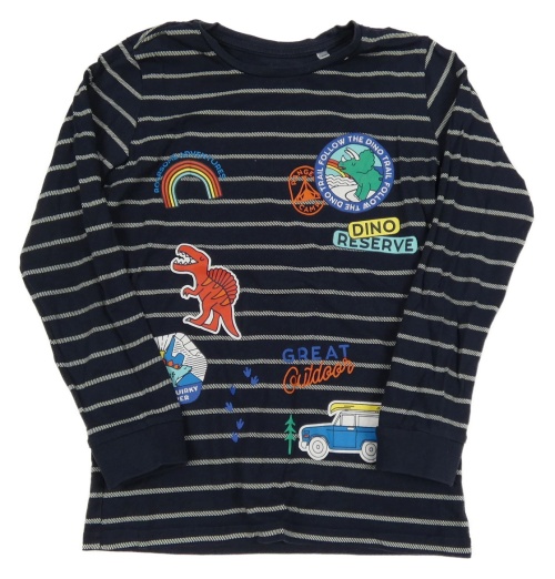 Tmavomodro-biele pruhované tričko s dinosaurami C&A