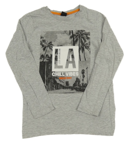 Sivé melírované tričko s palmami a nápisom Y.F.K.