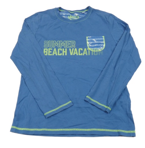 Modré tričko s pruhovanou vreckom a nápisom Sanetta