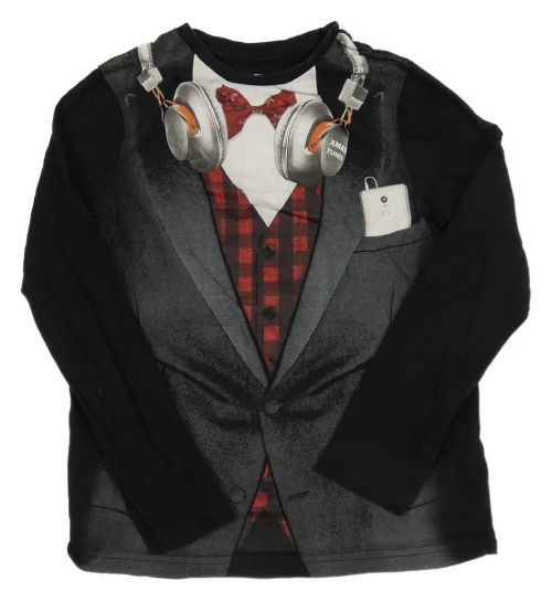 Čierne tričko s tištěnou vestou a motýlkom C&A