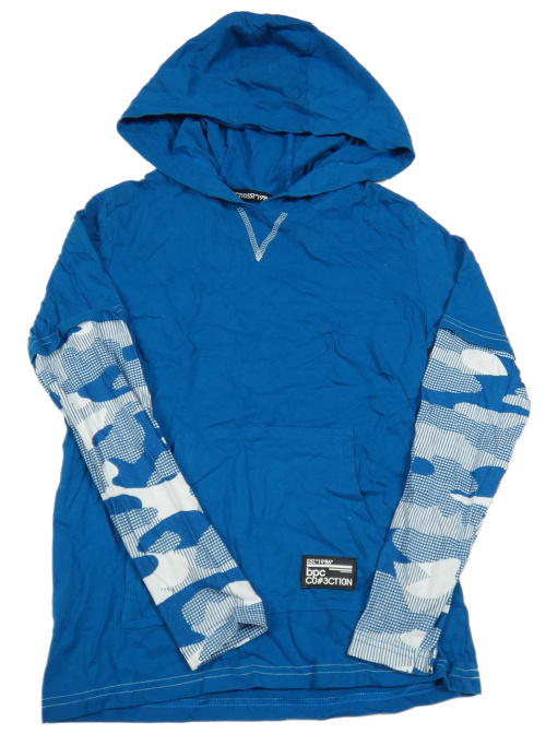 Petrolejovo-army tričko s vreckom a nášivkou a kapucňou bpc