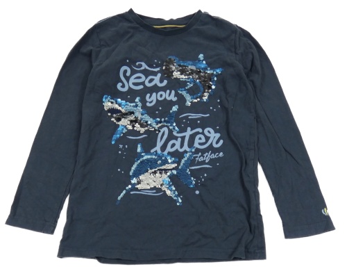 Tmavomodré tričko so žraloky z flitrů Fat Face