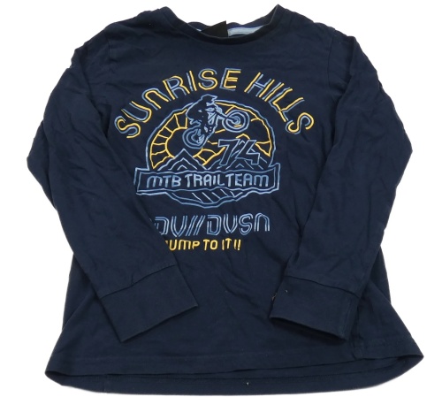Tmavomodré tričko s nápismi a motorkou C&A